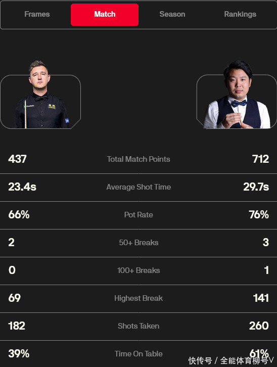 这场比赛,达仔以4-6输给对手,非常遗憾,比赛数据方面,他得到712分,对手只有437分,明显的是赢了数据,而对手赢得胜利。