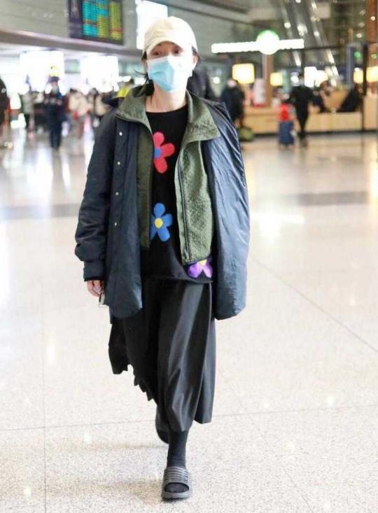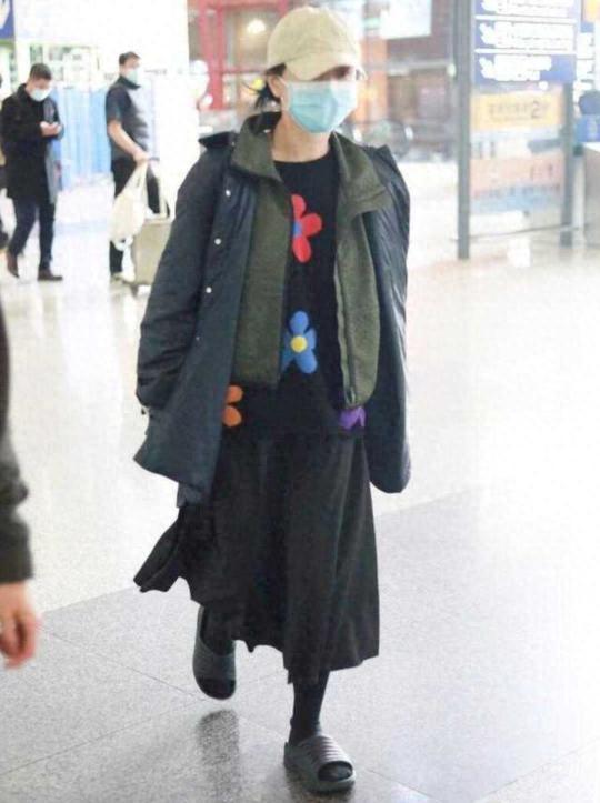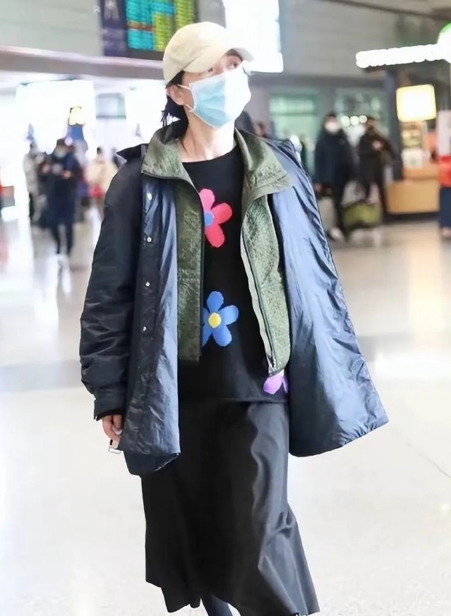 下身搭配黑色半身裙和打底裤,轻松玩转混搭风,打破了机场的穿搭常规。然而,就是这样的随意搭配,却意外流露出一种高级感和个性魅力,周迅深谙时尚的秘密,她不追求华丽,而是通过简约与舒适的结合,展现出真实的自我。